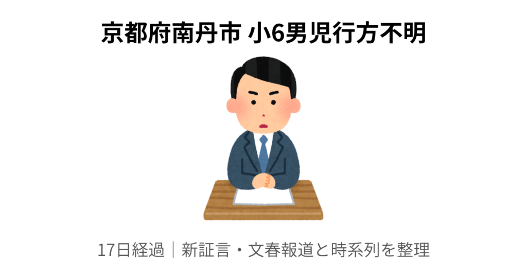 京都府南丹市 小6男児行方不明17日経過|新証言・文春報道と時系列を整理