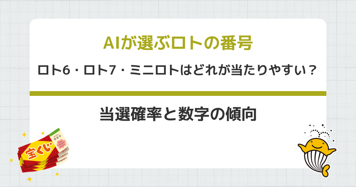 ロト6・ロト7・ミニロトの番号の傾向やAI予想については、こちらの記事でも紹介しています。